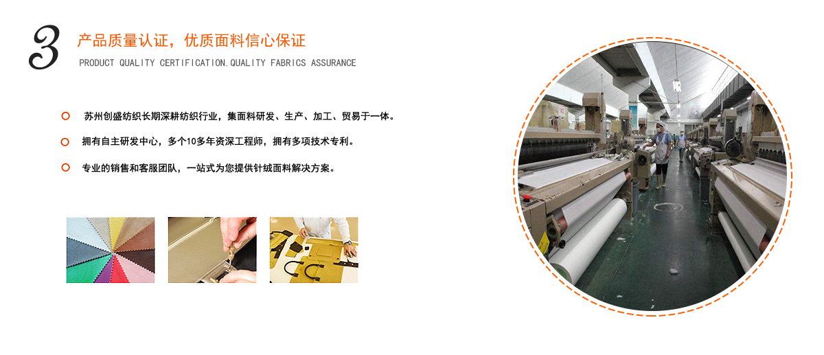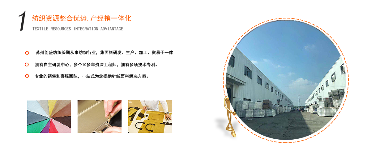 蘇州創(chuàng)盛紡織有限公司坐落于江蘇省吳江市盛澤鎮(zhèn)圣塘村,自2004年成立以來,一直致力于中高檔功能型環(huán)保梭織面料的研發(fā)與經(jīng)營,創(chuàng)盛紡織在專注幾十年面料經(jīng)營中,不斷的完善管理,嚴格的把控品質(zhì),精準的創(chuàng)新產(chǎn)品,從而讓每一款面料滿足不同客戶的個性化需求,產(chǎn)品廣泛適用于:嬰兒用品、戶外旅行用品、運動休閑用品、箱包手袋、家庭收納用品等領(lǐng)域。